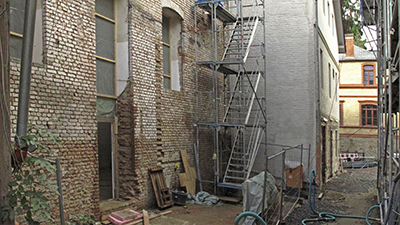 Türdurchbruch in der Nordfassade des Brauhauses. Dies wird einmal der Haupteingang zu den Veranstaltungsflächen des Künstlervereins. |