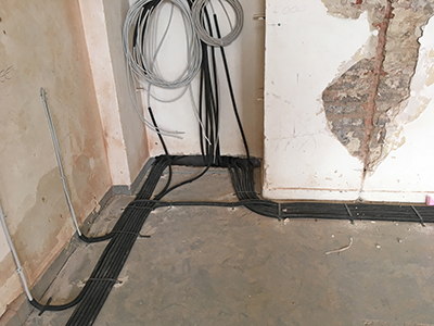 10.11.2019 Erste Kabelzüge für die Bodenauslässe und Steckdosen im Erdgeschoss des Brauhauses. |
