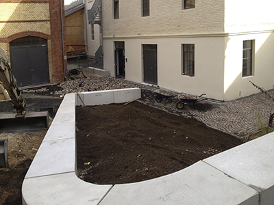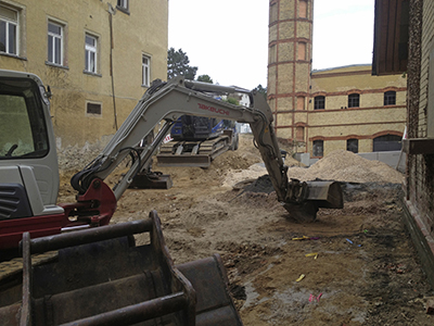 18.08.2020 Pflaster- und Einfassungsarbeiten an der Abfahrt zum Malzhaus und zwischen Sudhaus und Mühlengebäude. |
