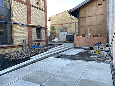 Fertiggestellte Oberflächen zwischen Sudhaus und Brauhaus. |