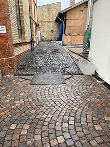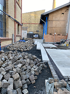 Der Bereich vor dem Haupteingang des Künstlervereins wird gepflastert. |