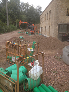 22.09.2017 Arbeiten an den Entwässerungsleitungen rund um das Getreidelager. |