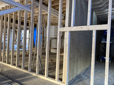 12.11.2020 Holzständerkonstruktion für die Zwischenwände im Kühlschiff. |