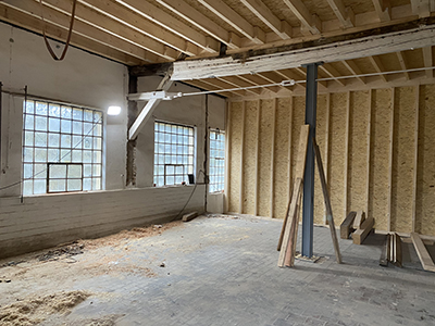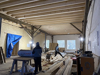 15.12.2020 Holzbau im späteren großen Veranstaltungsraum des Kühlschiffs. |