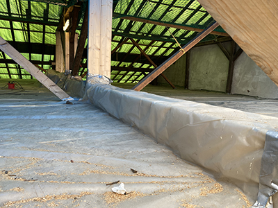 Das abgedeckte und provisorisch gesicherte Dach des Kühlschiffs ... |