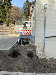 Die Beton-L-Profile der Hangbefestigung am Haus Esch muß rückgebaut bzw. versetzt werden. Sie stand teilweise auf der Fläche zweier geplanter Parkplätze und damit an der falschen Position. |