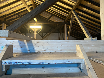 Viel ungenutzter Raum auf dem Dachboden des Kühlschiffs. |