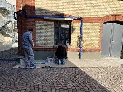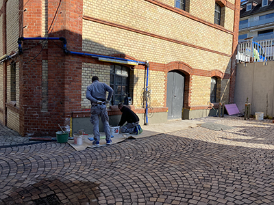 15.04.2021 Arbeiten am Mauersockel des Sudhauses. |