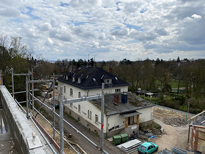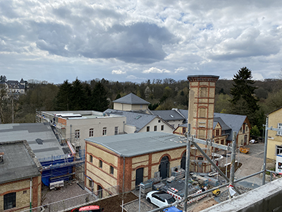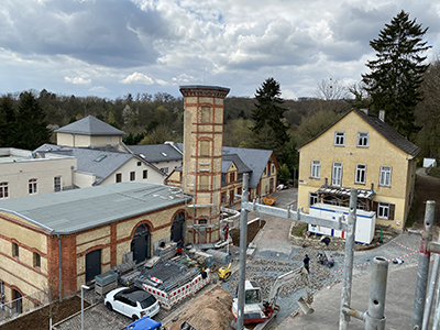 19.04.2021 Blicke vom Neubau auf das Kernensemble der Walkmühle. |