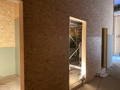 03.05.2021 Montierte und gespachtelte Brandschutzdecke im Veranstaltungsraum des Kühlschiffs. |