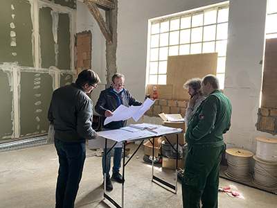 Ortstermin mit den Elektrikern und Trockenbauarbeiten im Kühlschiff. |