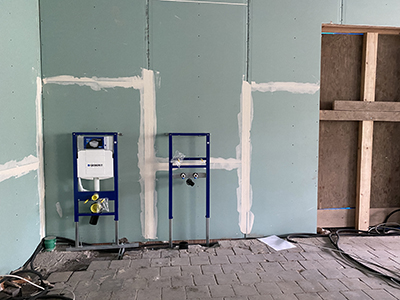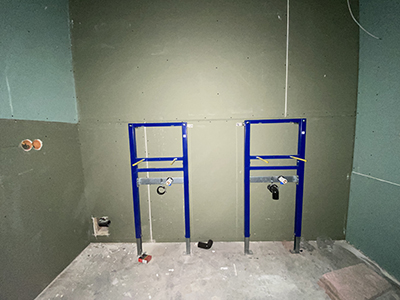 Erste Installationen in den WC-Anlagen der Veranstaltungsräume im Kühlschiff. |