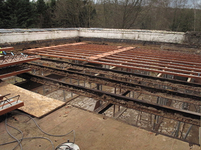 Malzhaus Obergeschoss: Erneuerung der meisten Deckenbalken |