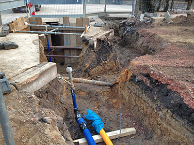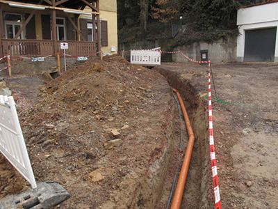 15.02.2017 Versorgungsgraben und Anschlussarbeiten an das städtische Netz im Bereich der Walkmühlstraße und oberen Zufahrt. |