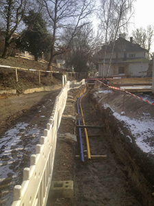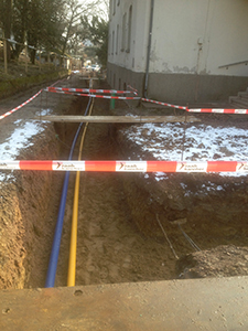 11.02.2017 Verlegung von Gas- und Wasserleitungen im Erschließungsgraben der oberen Walkmühl-Zufahrt. |