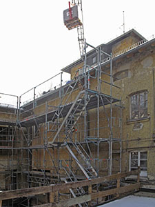 23.01.2017 Das Gerüst am Malzhaus und am Südflügel bzw. Turm steht. |