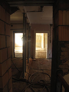 30.10.2016 Das Obergeschoss des Südflügels wurde um einen Teil des vormaligen Treppenhauses erweitert, ein neuer Türsturz gemauert. |