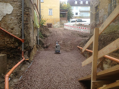 Schotterverdichtung im Mühlenhof. |