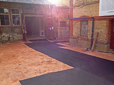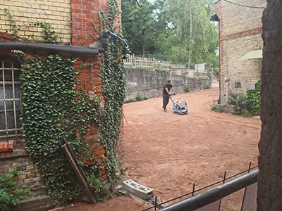 ... und verdichtet. Fehlen nur noch ein paar weiße Markierungen und ein Netz und der Tennisplatz ist fertig! |
