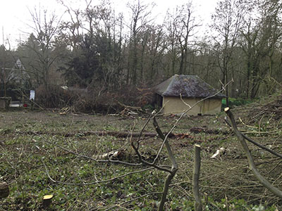 28.01.2014 Das neue Jahr beginnt traurig: Totalkahlschlag auf dem gesamten Walkmühl-Gelände. Nicht nur Sträucher und Büsche fallen, sondern auch die meisten Bäume! Manche Verantwortlichen sprechen gar davon, dass "alles bodengleich gemacht werden müsse." Muss das wirklich sein? Für die Atmosphäre und das Ambiente der Mühle ist es jedenfalls ein schwarzer Tag. |