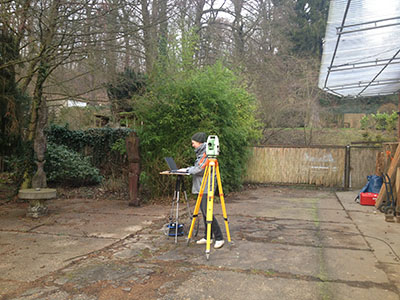 04.02.2014 Überall auf dem Gelände und in den Innenräumen sind Vermessungsteams unterwegs. Bald wird es wohl die ersten wirklich exakten Aufmaße und Pläne der bestehenden Gebäude geben. |