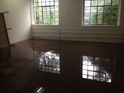 11.07.2014 Immer wieder ein Schock: Durch die Türen eindringendes Wasser nach sommerlichen Platzregen. Die Kanalisation und Entwässerung der Mühle ist eine Katastrophe. Diesmal wird sogar unser Ausstellungsraum komplett geflutet zum Glück ohne laufende Ausstellung ... Da hilft wieder einmal nur Wasser schippen ... während es bereits schon durch die Geschossdecke hindurch ins Vinotto tröpfelt .. Sandsäcke vor den Türen müssen auf unbestimmte Zeit wohl ein dauerhaftes Provisorium werden. |