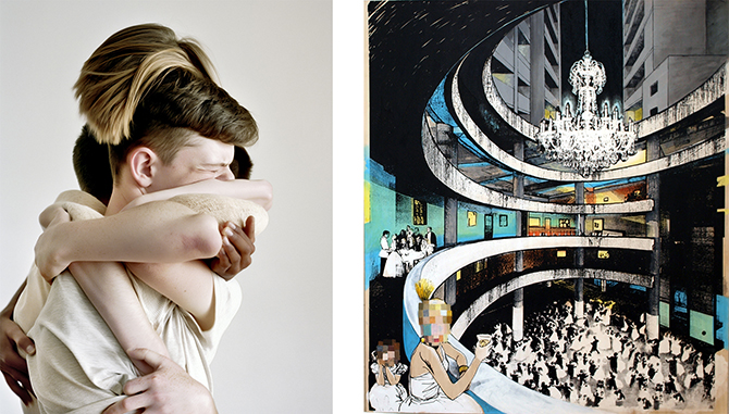 | Links: Dieter Schwer: »Transformation #1«. Foto ©Dieter Schwer. Rechts: Billa Burger: »Torre David«, 2015. Siebdruck und Acry auf Holz. Foto ©Billa Burger. |