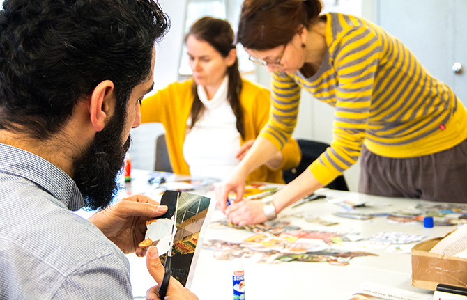 Collage-Workshops mit Andrea Esswein 25./26.10. sowie 8./9.11.) und Wiebke Kirchner (16.11.) im Rahmen der Ausstellung »LINKING – Collage als Methode«. |