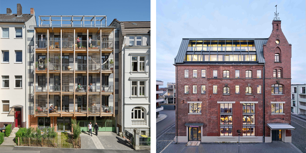 | Links: Suffizienzhaus U10 im Kasselaner Martini-Quartier. Rechts: Das Sudhaus (ebendort). Beide Abbildungen ©foundation5+ architekten. | ||||||||